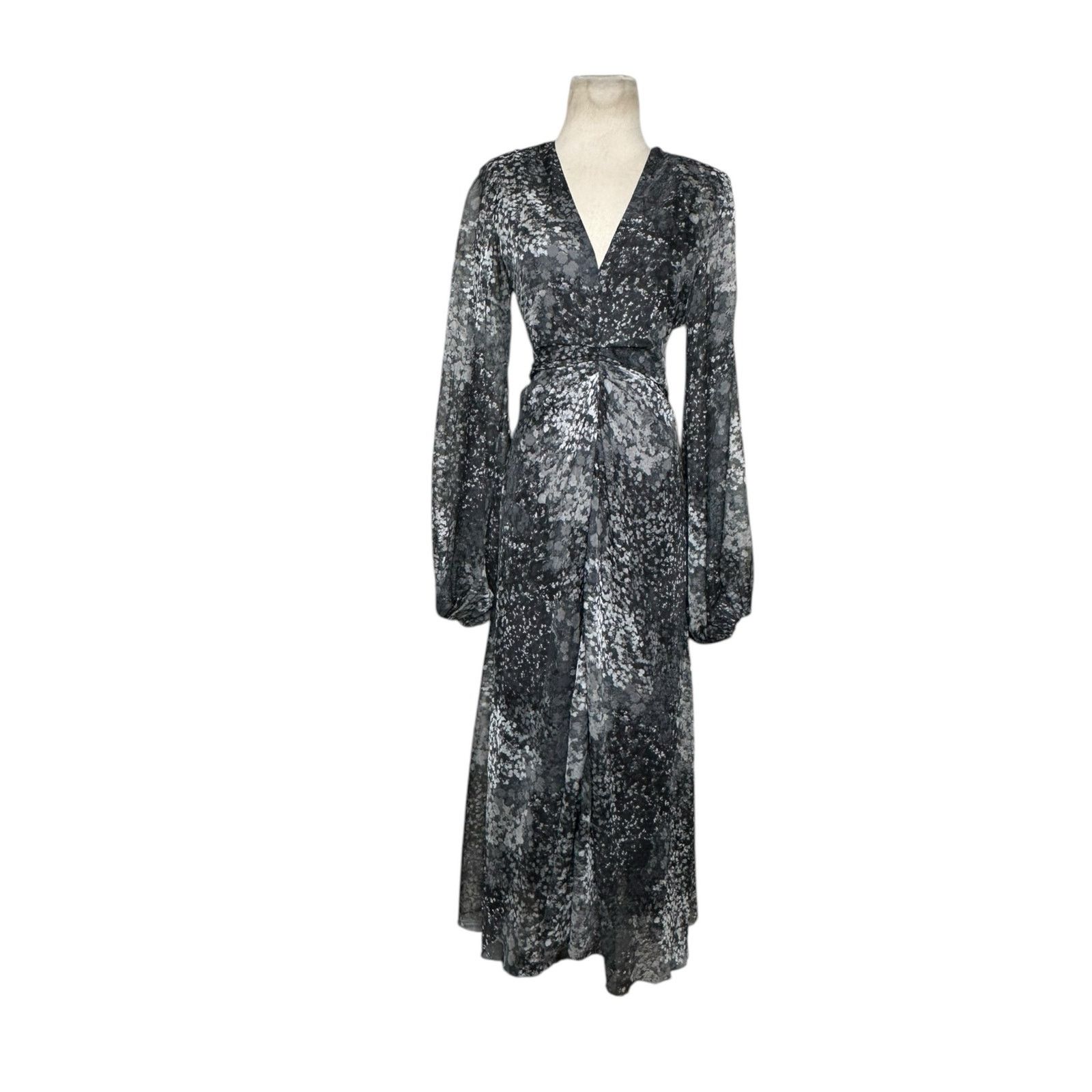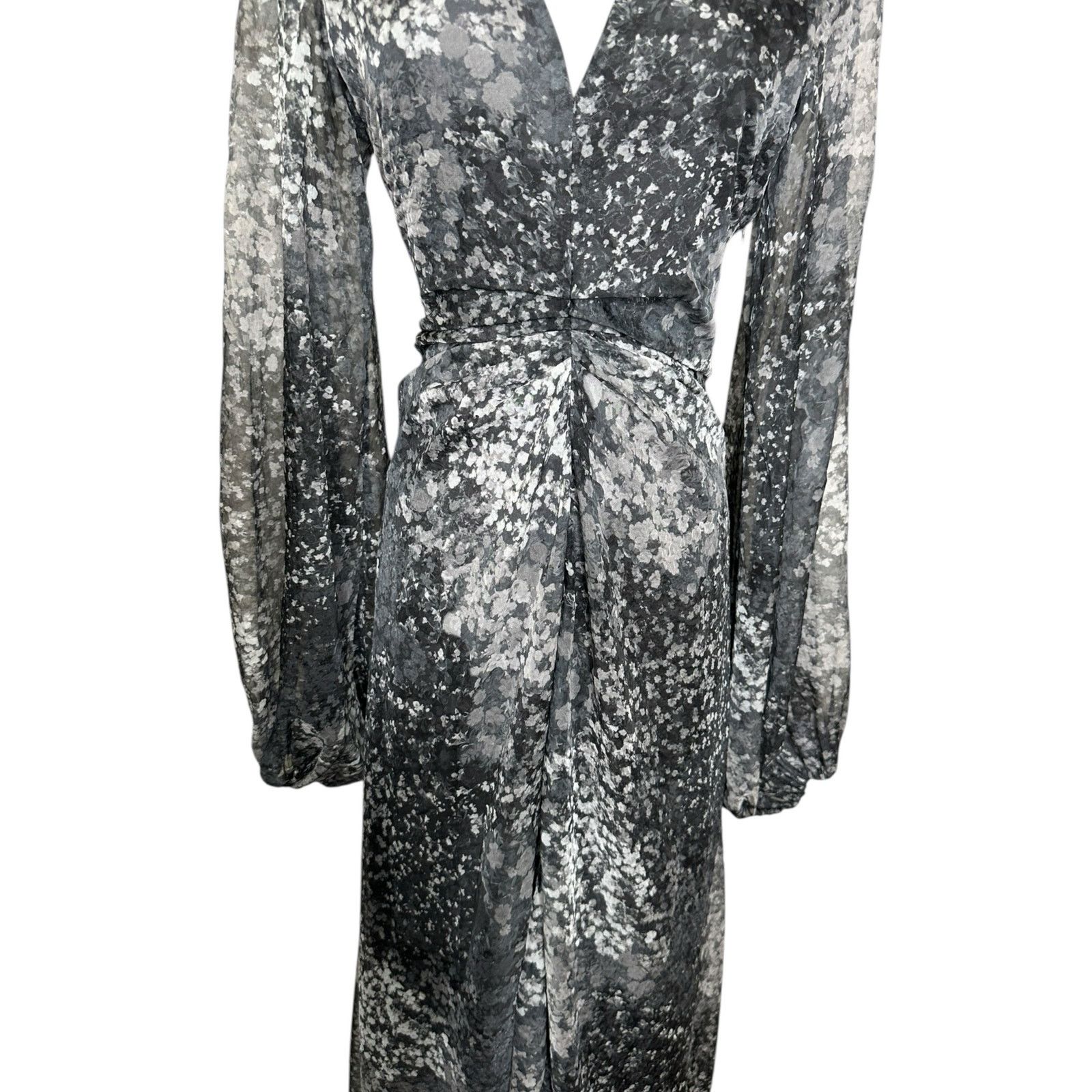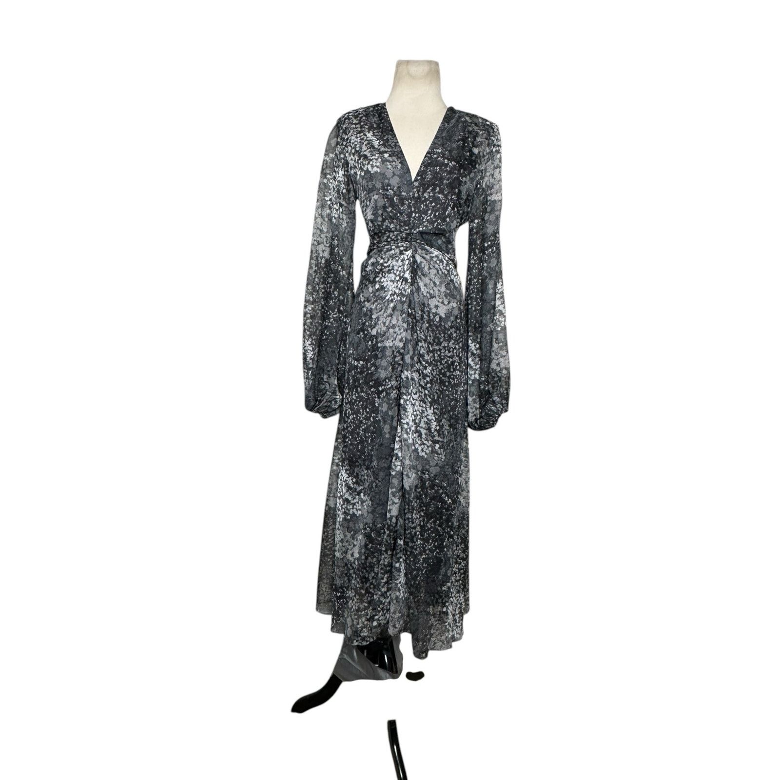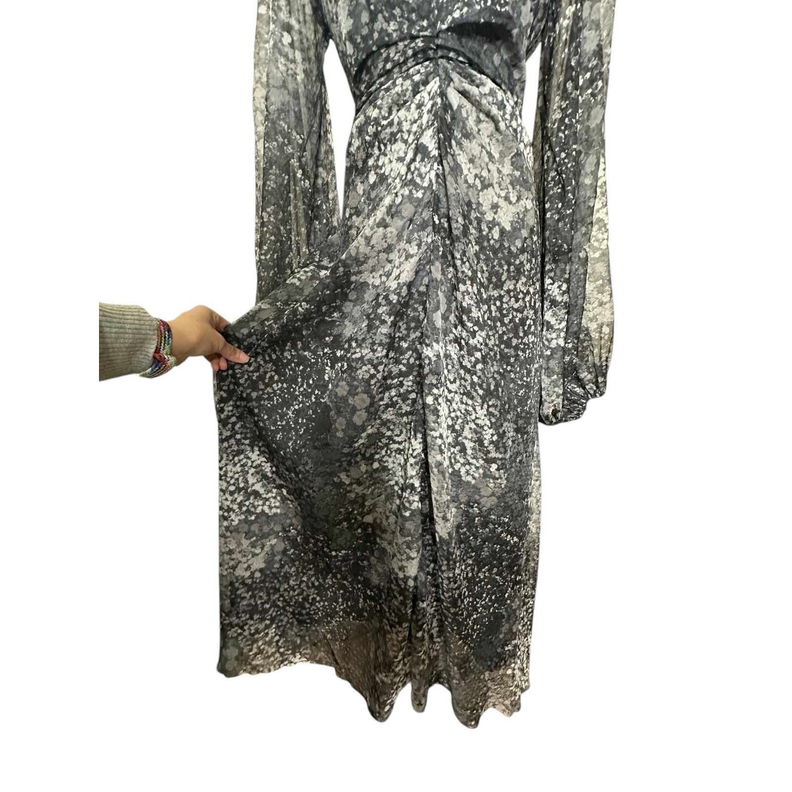 Rotate Gray printed long sleeves midi dress size 6