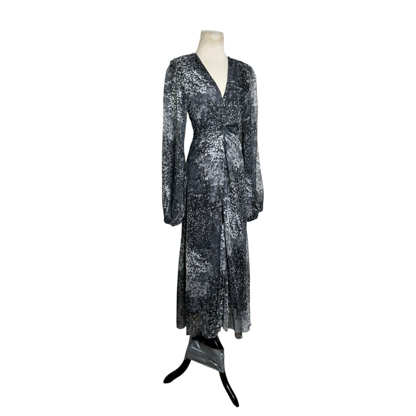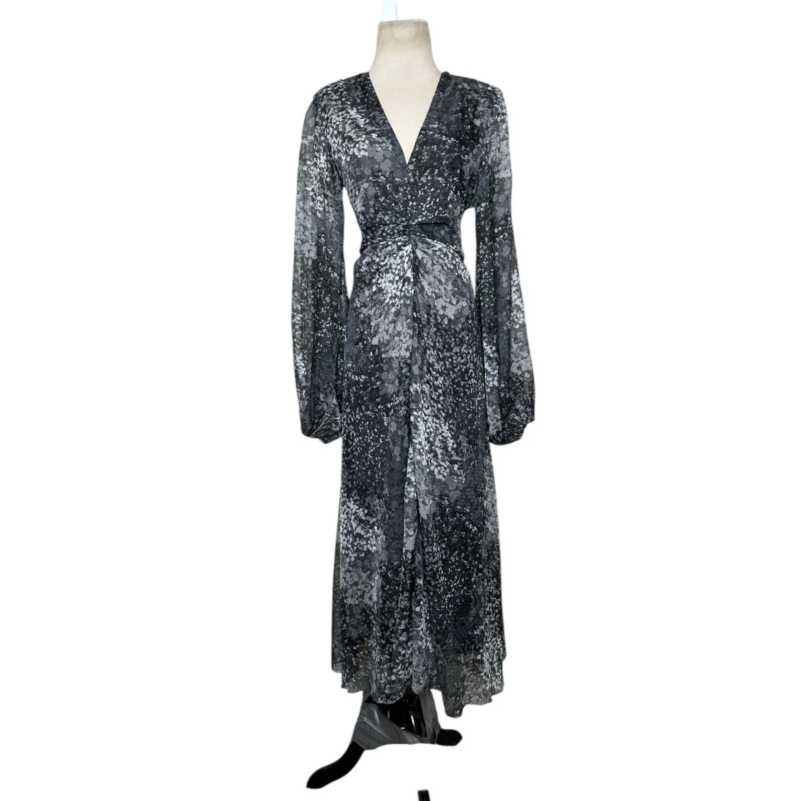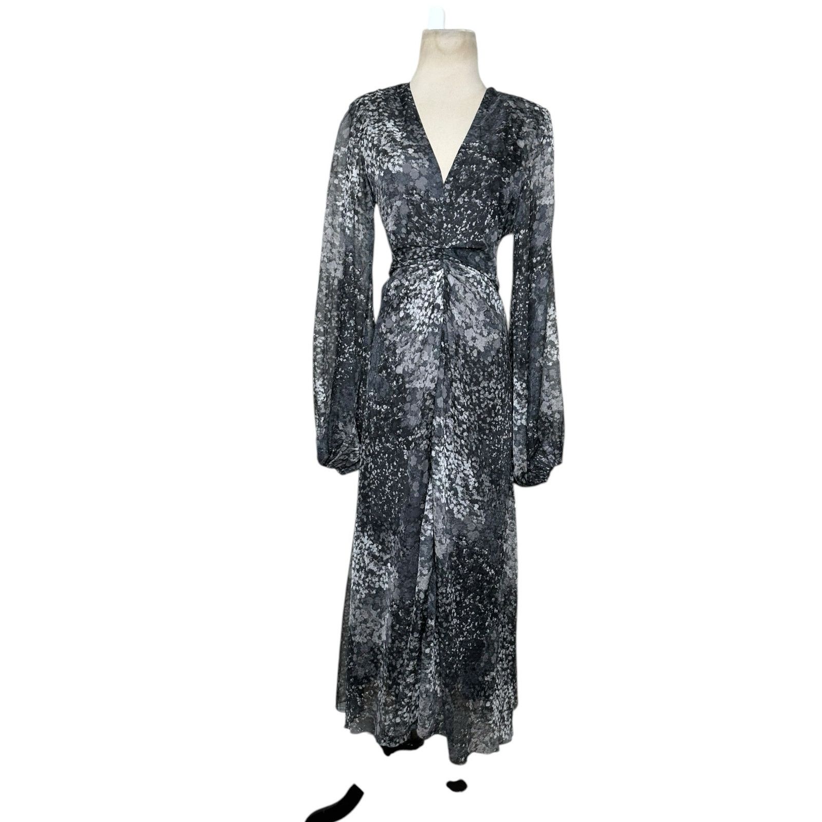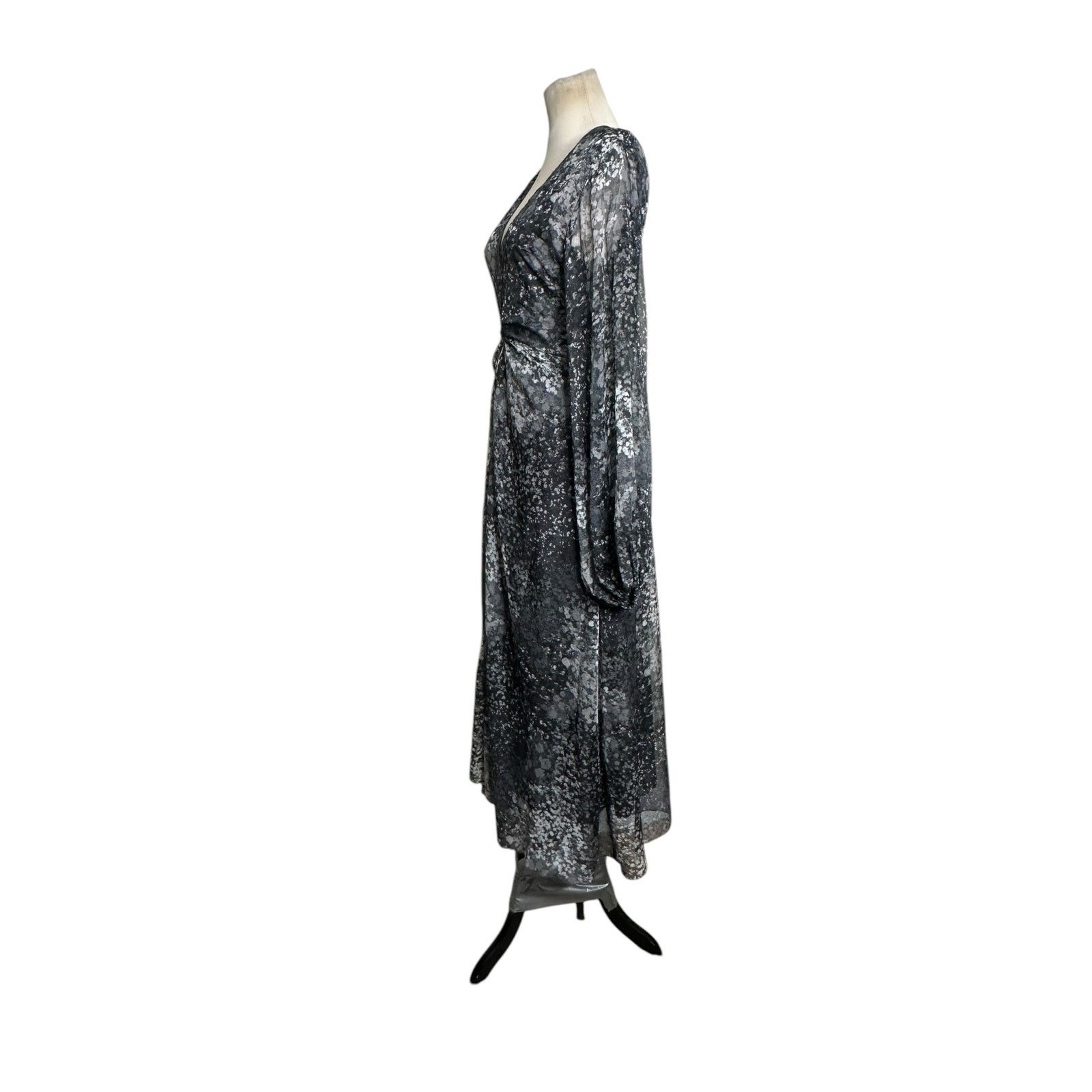 Rotate Gray printed long sleeves midi dress size 6